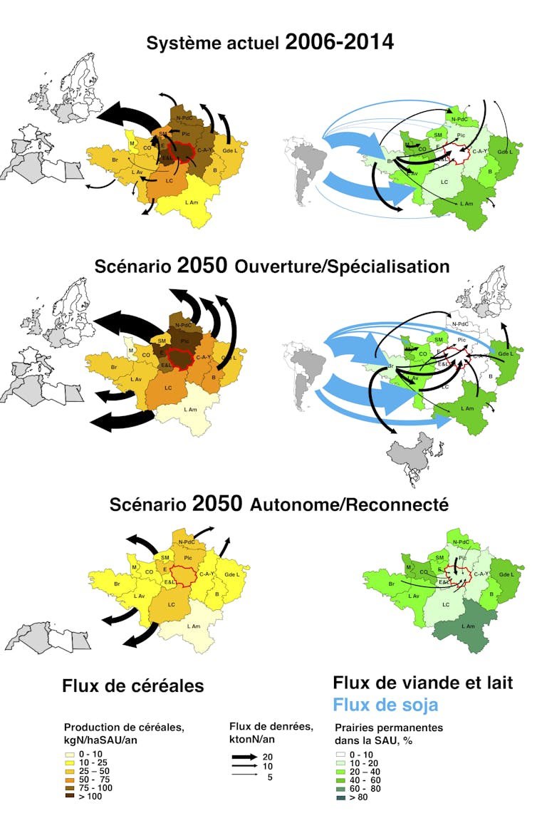 Dans le cadre du programme de recherche PIREN-Seine, ces visions opposées ont été prises comme base pour l’établissement de deux scénarios prospectifs du système agro-alimentaire français à l’horizon 2050, à l’échelle territoriale et nationale.