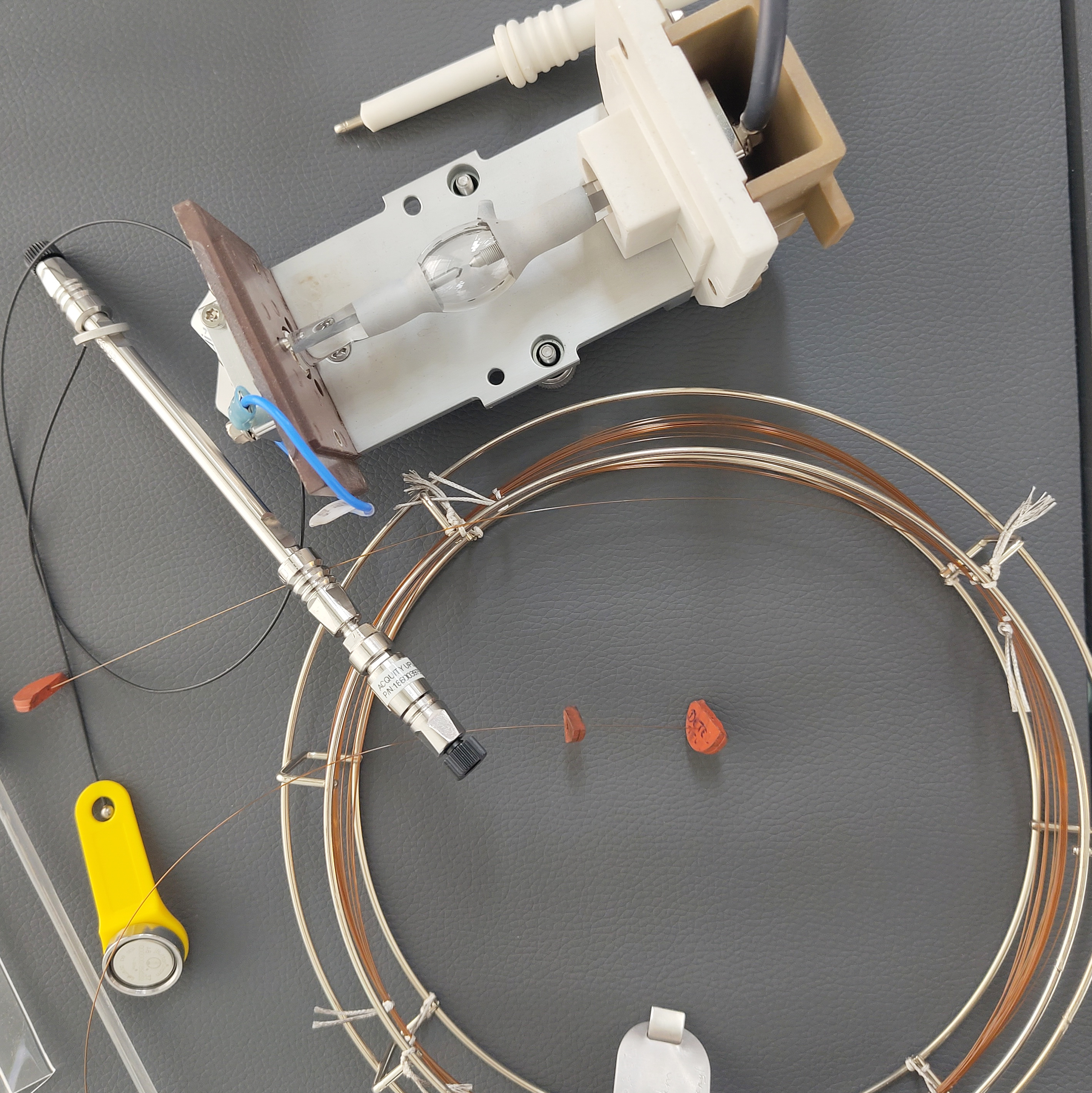 Objets exposés : Colonnes de chromatographie en phase gazeuse et en phase liquide, détecteurs, seringue d’injection
